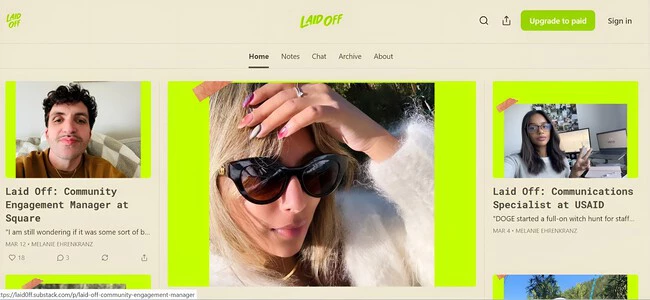 Así, la mujer en agosto de 2024, lanzó Laid Off, un boletín informativo de Substack que pretende ser "el lugar más genial de internet para hablar sobre ser despedido". Gestiona el boletín además de su trabajo como jefa de contenido y comunidad en Business Class, que ofrece cursos en línea para emprendedores.