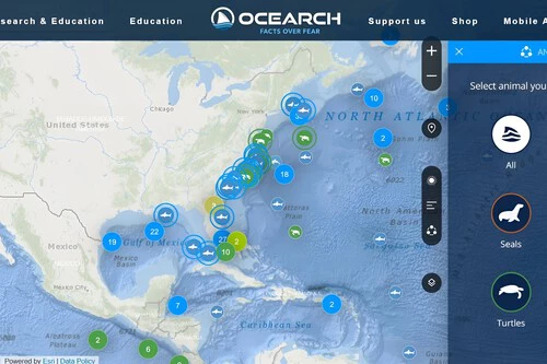 OCEARCH es una organización especializada en datos creada para ayudar a los científicos a recopilar información que antes era inalcanzable en el océano, al mismo tiempo que investigan y exploran fuentes abiertas. Un ejemplo de su trabajo es la herramienta que preside su web: un tracker de animales marinos.